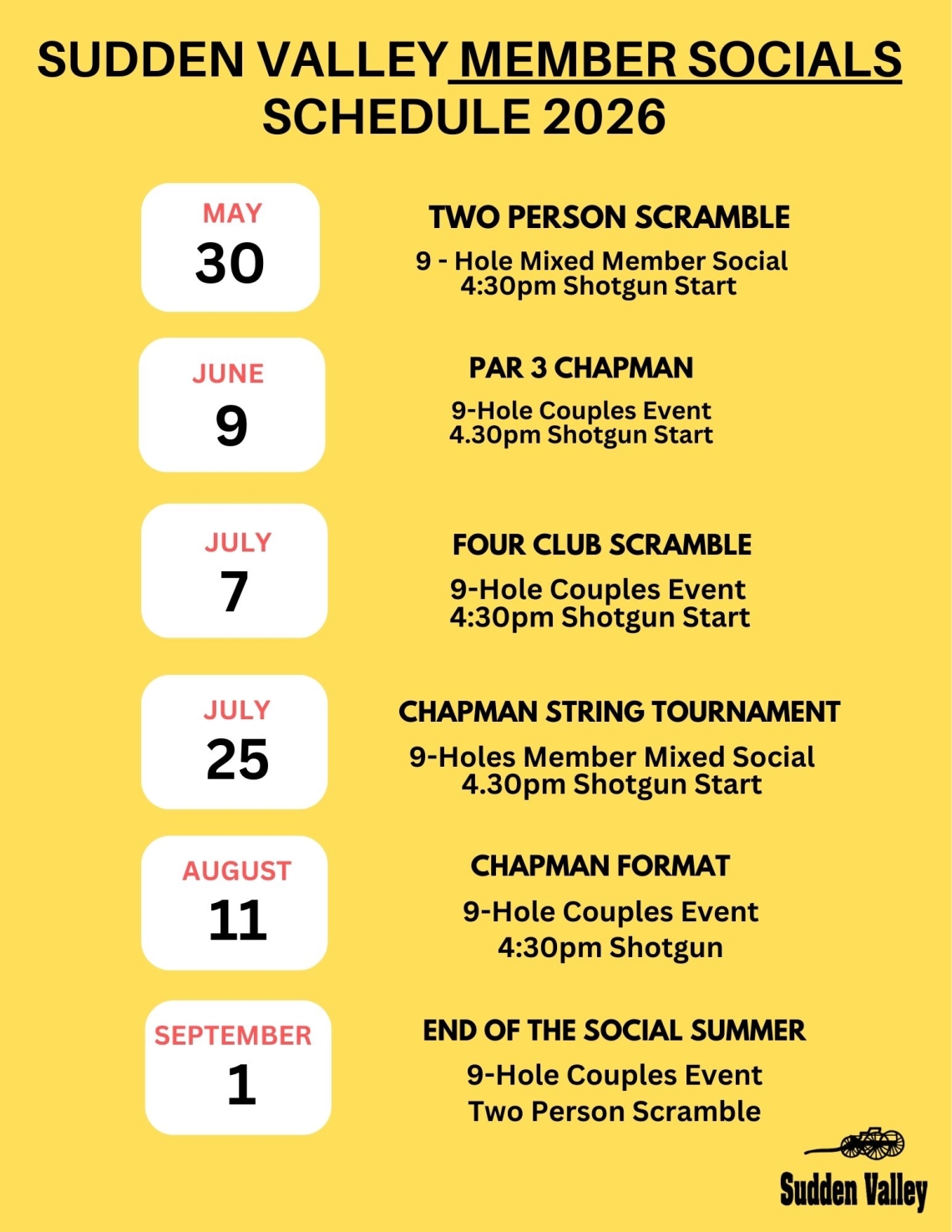 2026 Social Golf Schedule